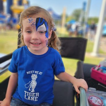 Community events, private Events where face painting is reserved for a set amount of time. Events that expect high volume the artist will bring word boards with quick options in order to serve as many people as possible. Smaller events such as private birthday parties, the artist will bring a board with images of options to choose from. If artist is asked to go over time an additional fee will be applied. Artist provides all supplies including tables, chair and tent when needed.